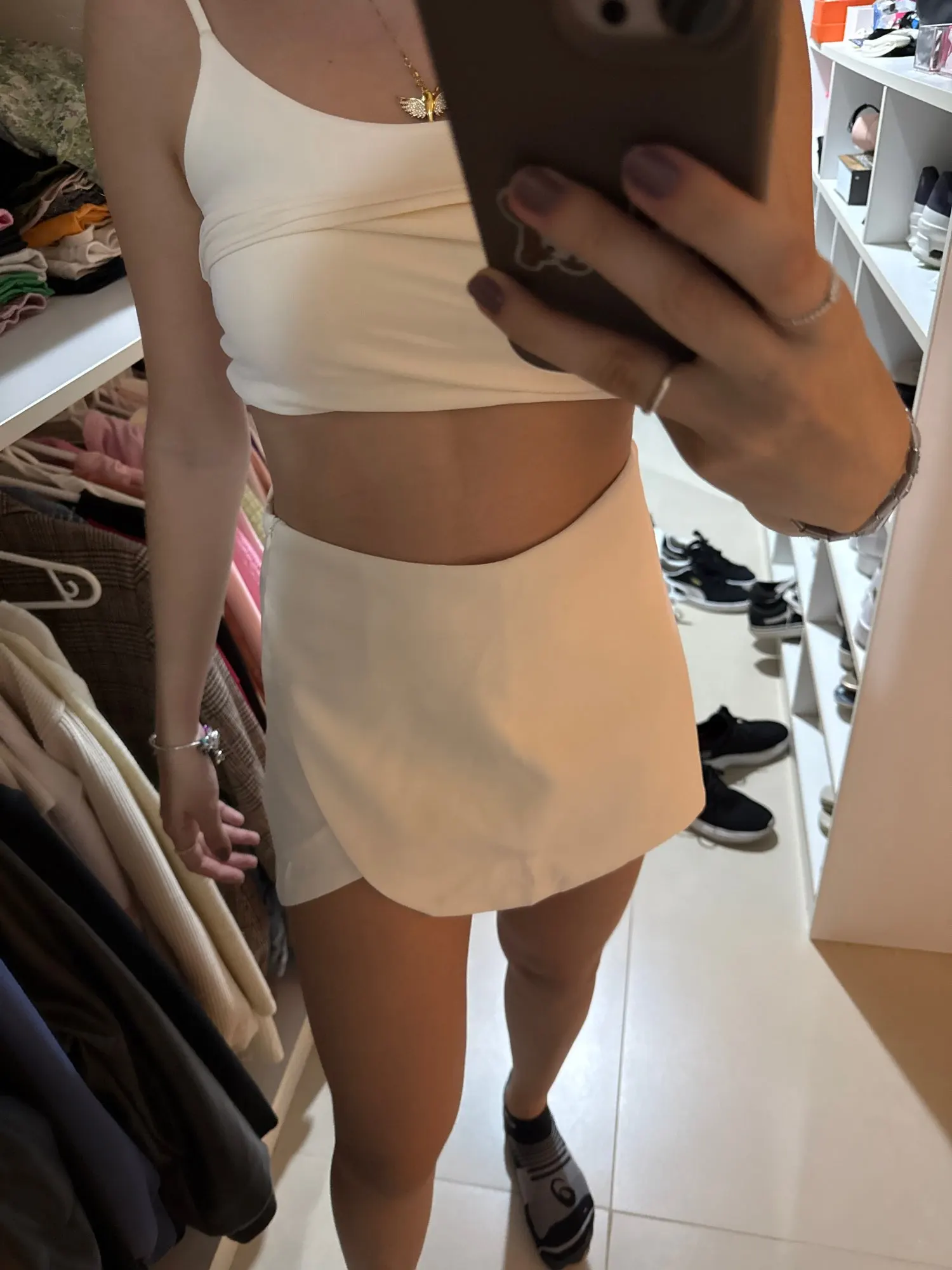Step up your fashion game with our Chic Asymmetrical Skort – the perfect blend of sleek style and effortless comfort. This high-waisted mini skirt features a modern wrap-front design and built-in shorts for added coverage and confidence. The soft, lightweight fabric ensures a flattering silhouette while keeping things playful and versatile for brunches, beach days, or street-style slays. Pair it with crop tops, knits, or blazers for an effortlessly elevated look.
