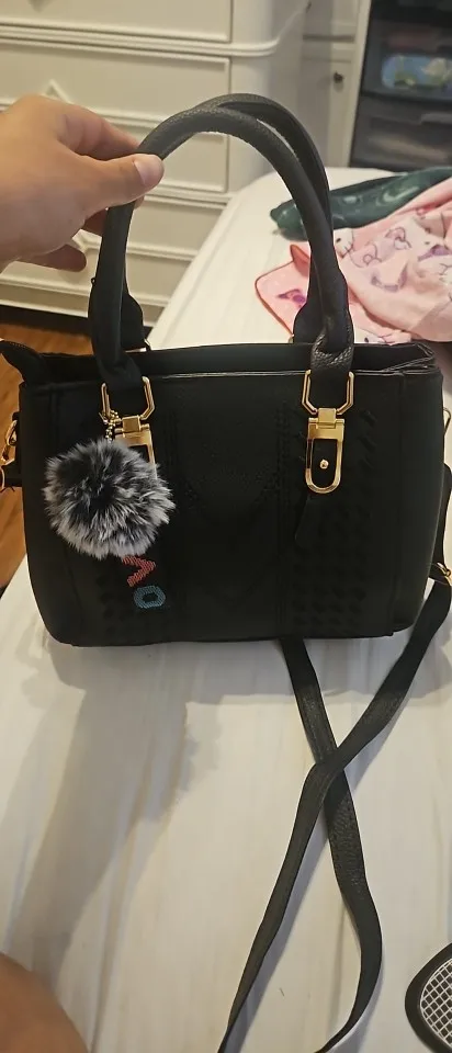 Featuring a detachable shoulder strap and double handles, it seamlessly transitions from crossbody convenience to handheld charm. The fluffy pom-pom keychain and colorful “LOVE” tag add a playful touch, while multiple inner pockets keep your essentials organized on the go.