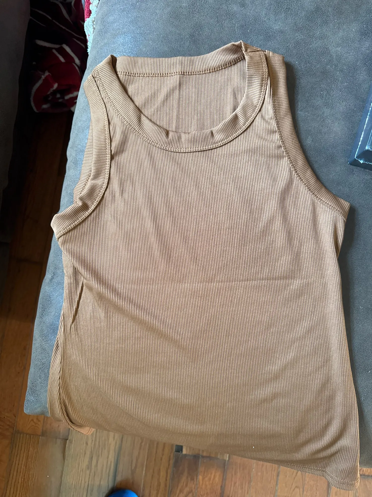 The woman solid round ribbed tank top has a elastic stretch. It matches the cell his photos and description. And i’m pleased with my purchase.