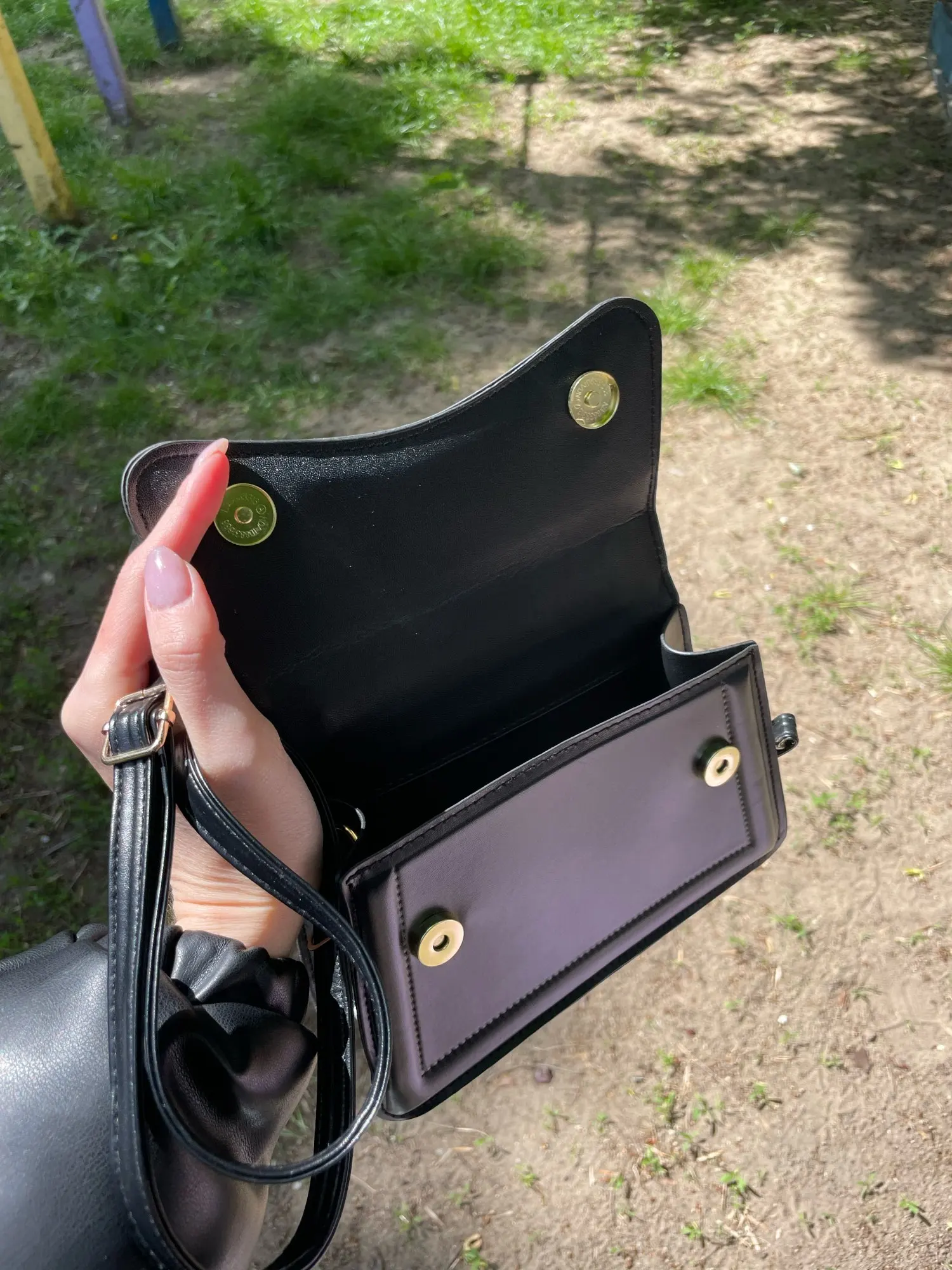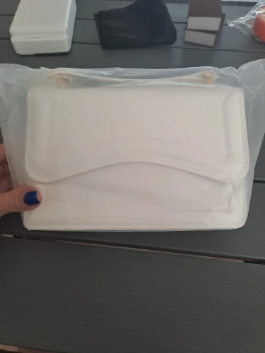 • Unique folded flap design for a modern silhouette