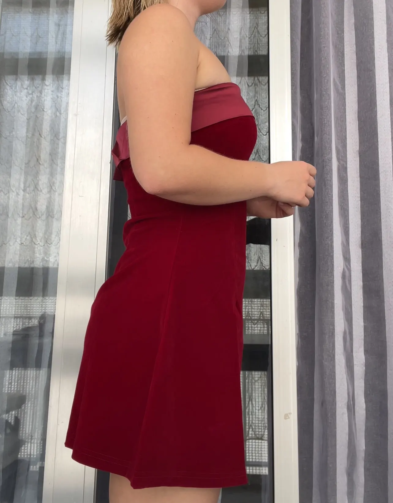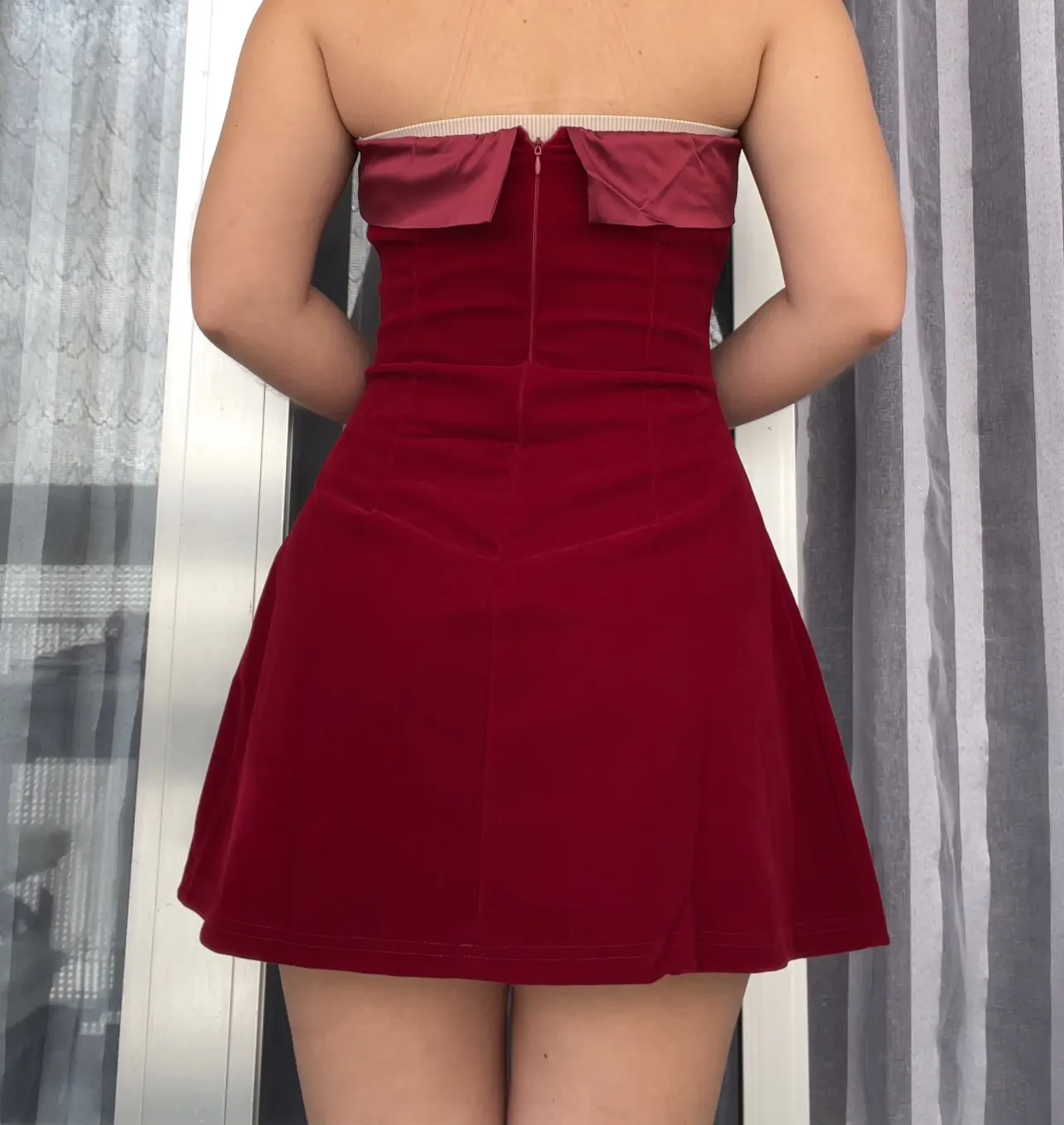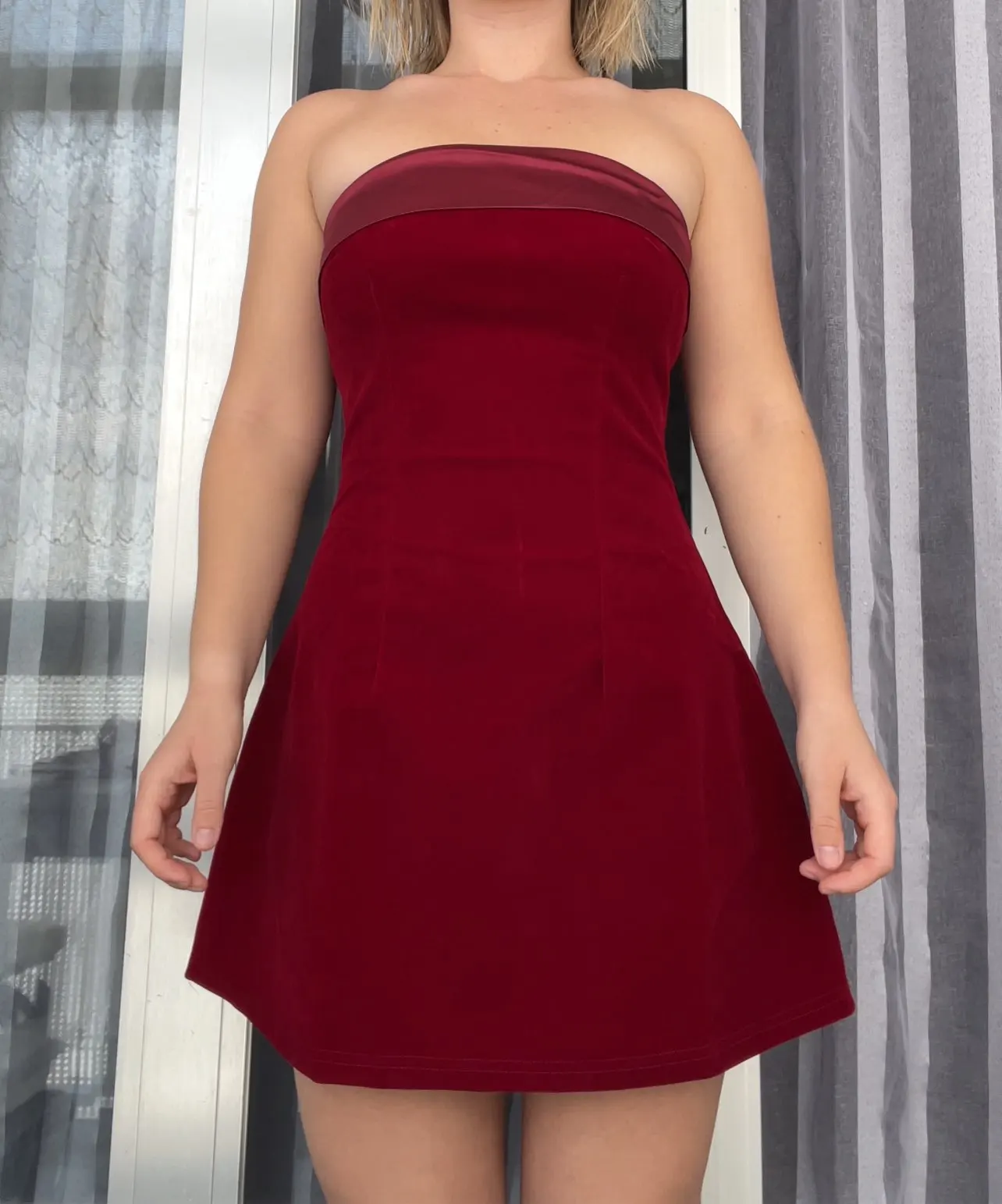 The Midnight Muse Velvet Strapless Mini Dress is your go-to for owning the night with refined sensuality. Crafted from a luxe blend of polyester and spandex, this dress features a plush velvet finish and sleek satin banding for a contrast that’s pure glamour. Its flattering A-line silhouette cinches at the waist and flares subtly for a curve-enhancing fit that feels as good as it looks.
