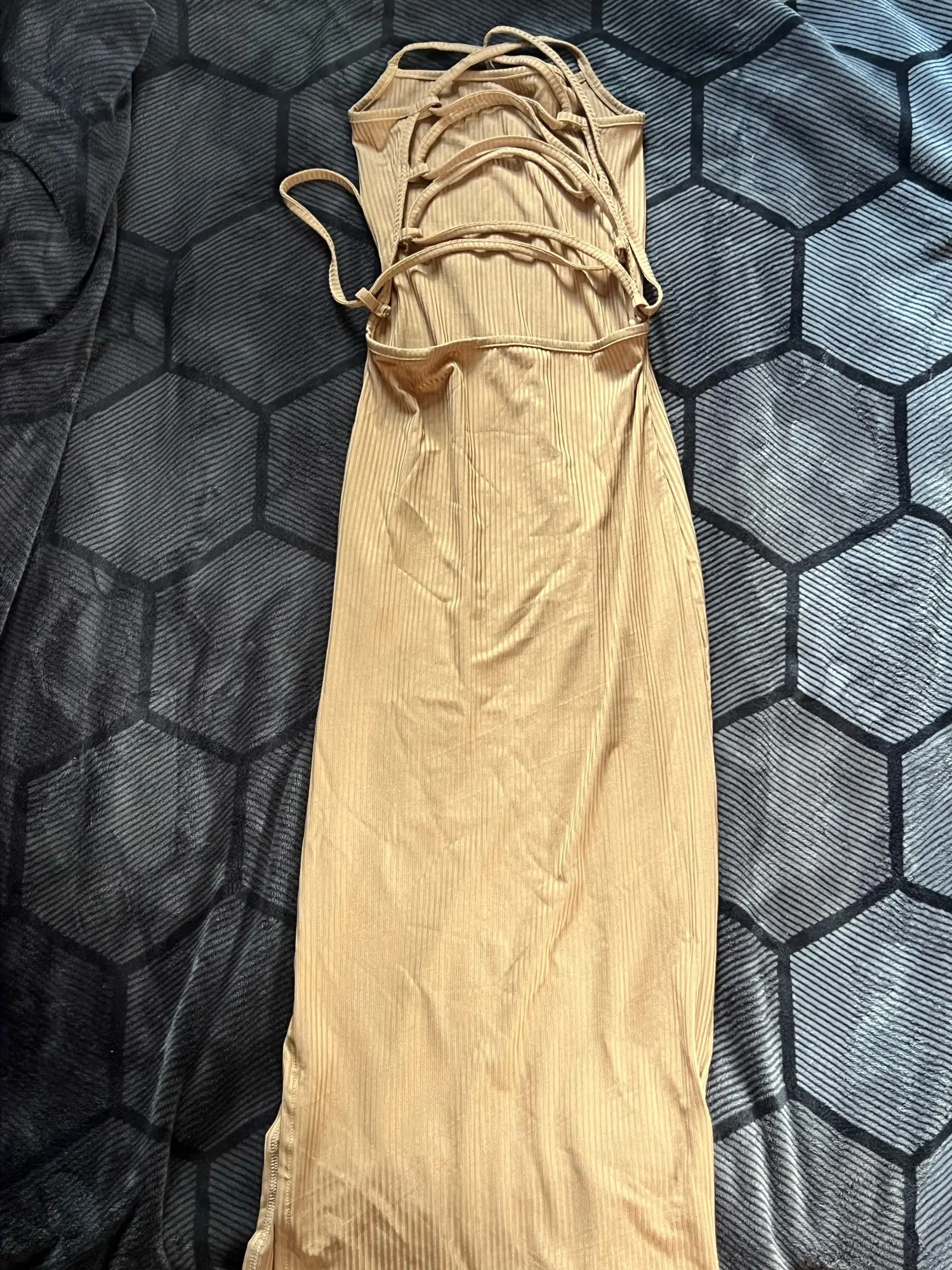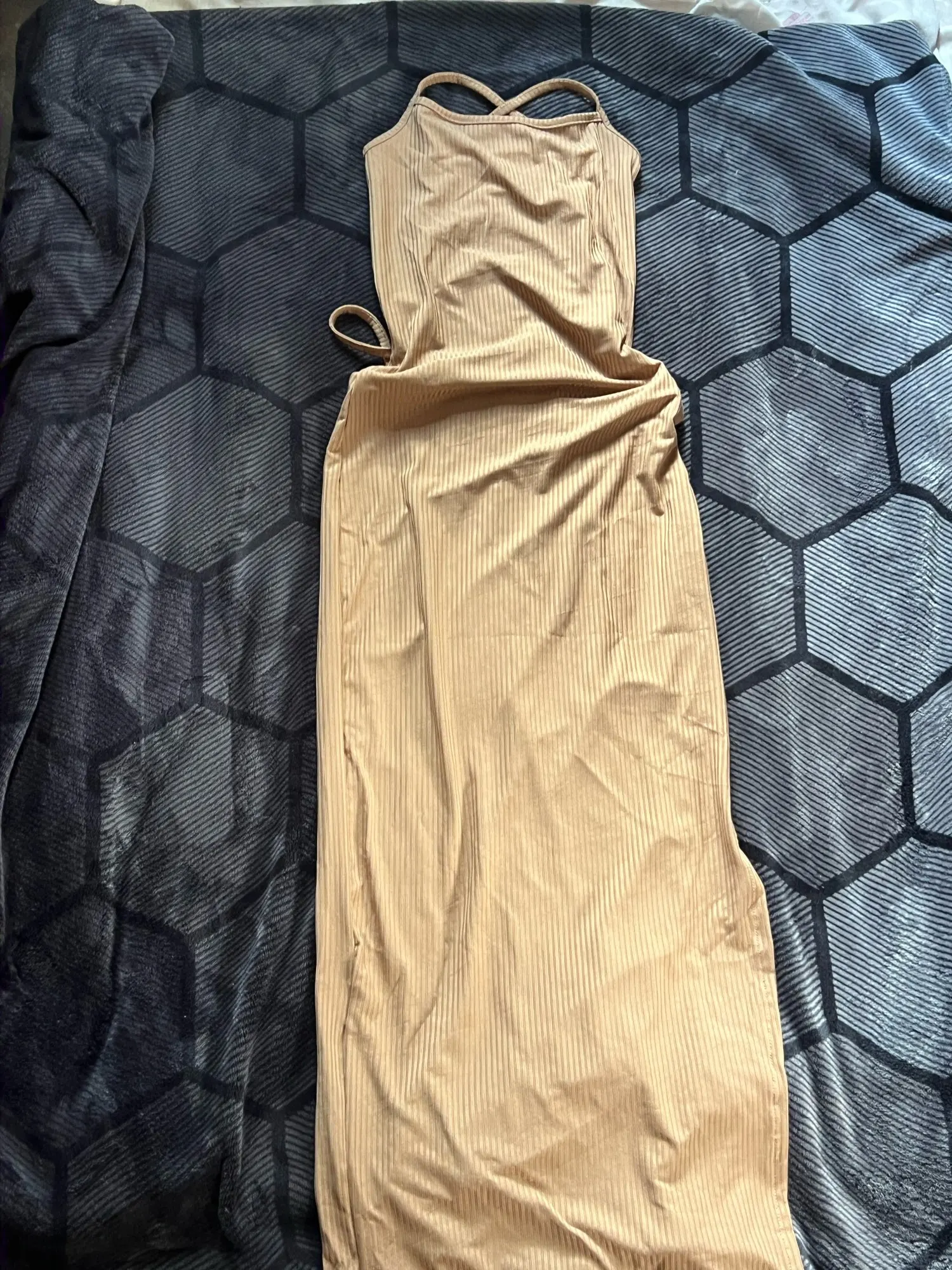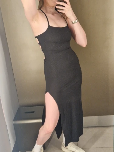 Turn up the heat in our Midnight Temptation Cutout Bodycon Dress – a sultry must-have for your summer nights out. This figure-hugging black dress features a sleek, ribbed texture with high stretch for comfort and contour, while the daring side cutouts and crisscross ties flaunt your curves from every angle. Finished with a thigh-high slit and minimalist spaghetti straps, it's the perfect statement piece for clubs, date nights, or rooftop parties.