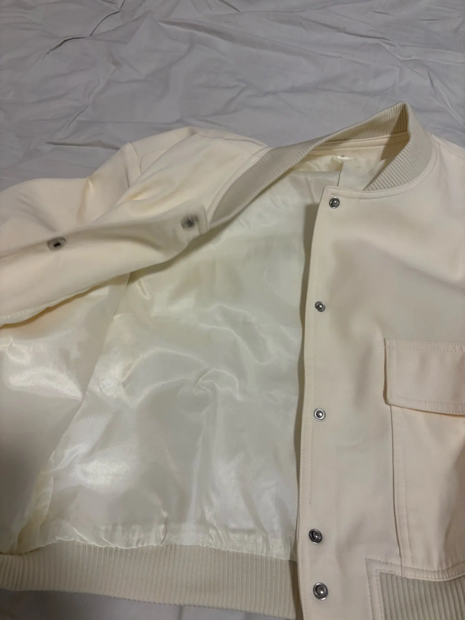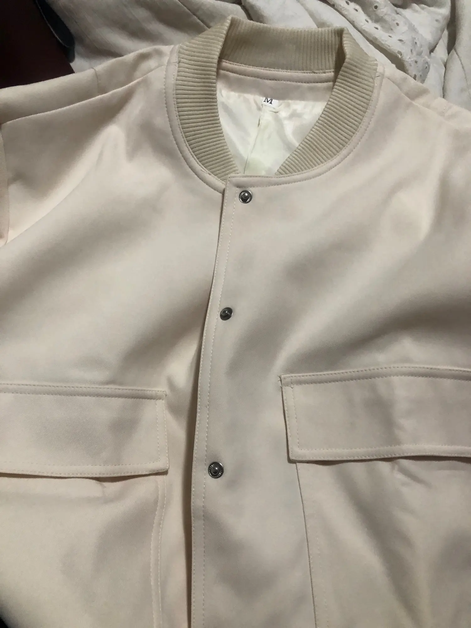 Step up your streetwear game with the Urban Luxe Cropped Bomber Jacket – where minimalist design meets effortless edge. This off-white stunner features a cropped silhouette, snap-button front, and oversized flap pockets for a utility-inspired look. Made from durable yet soft fabric, it’s lightweight enough for all seasons and stylish enough for everyday slay.