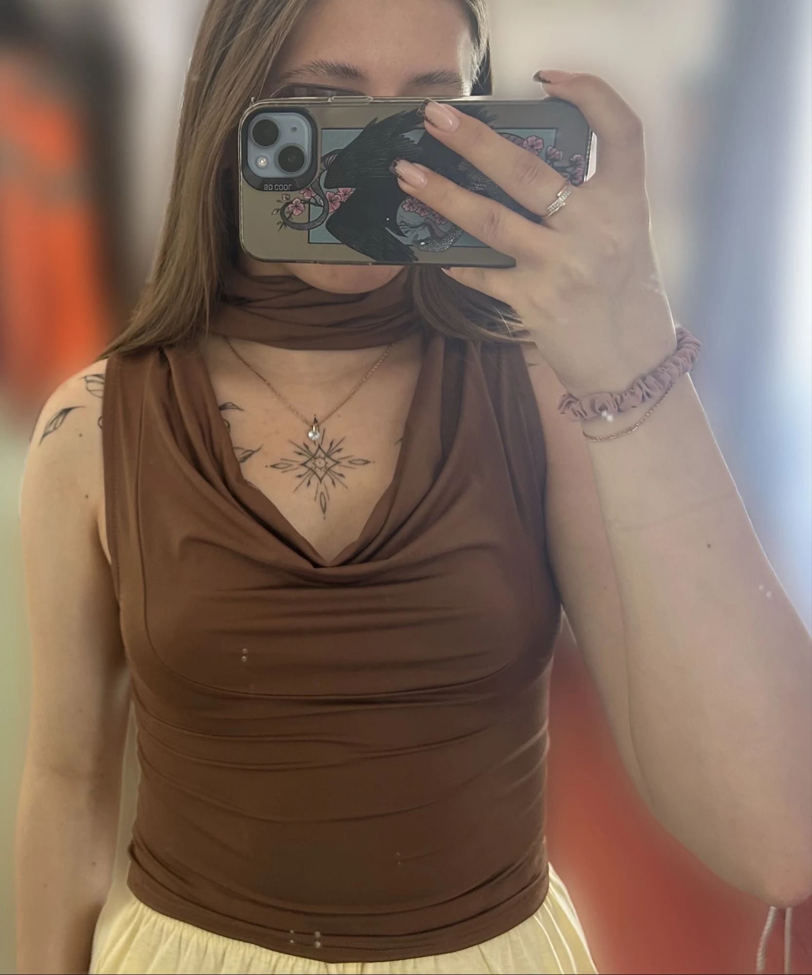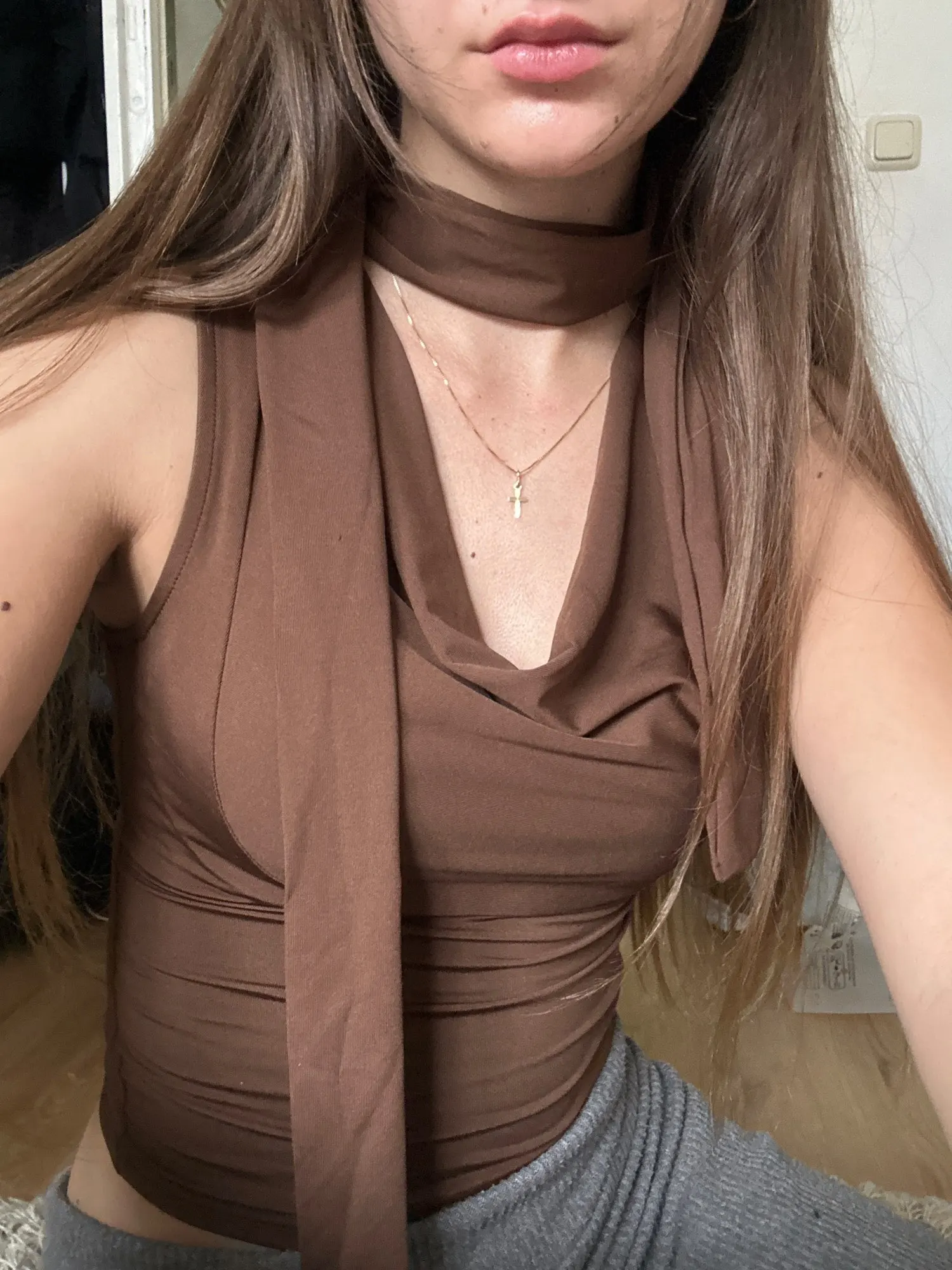Statement halter tie that doubles as a scarf accent