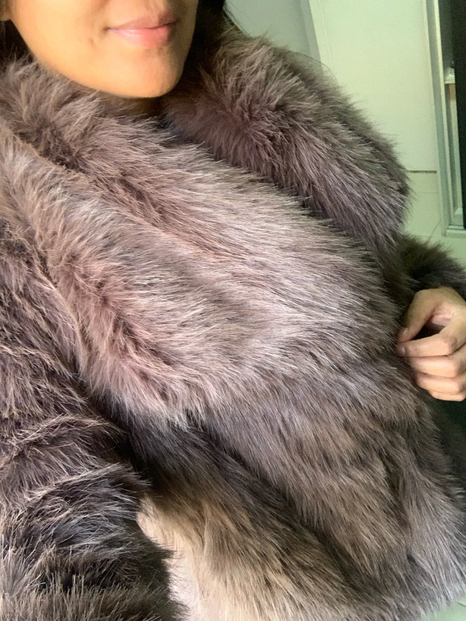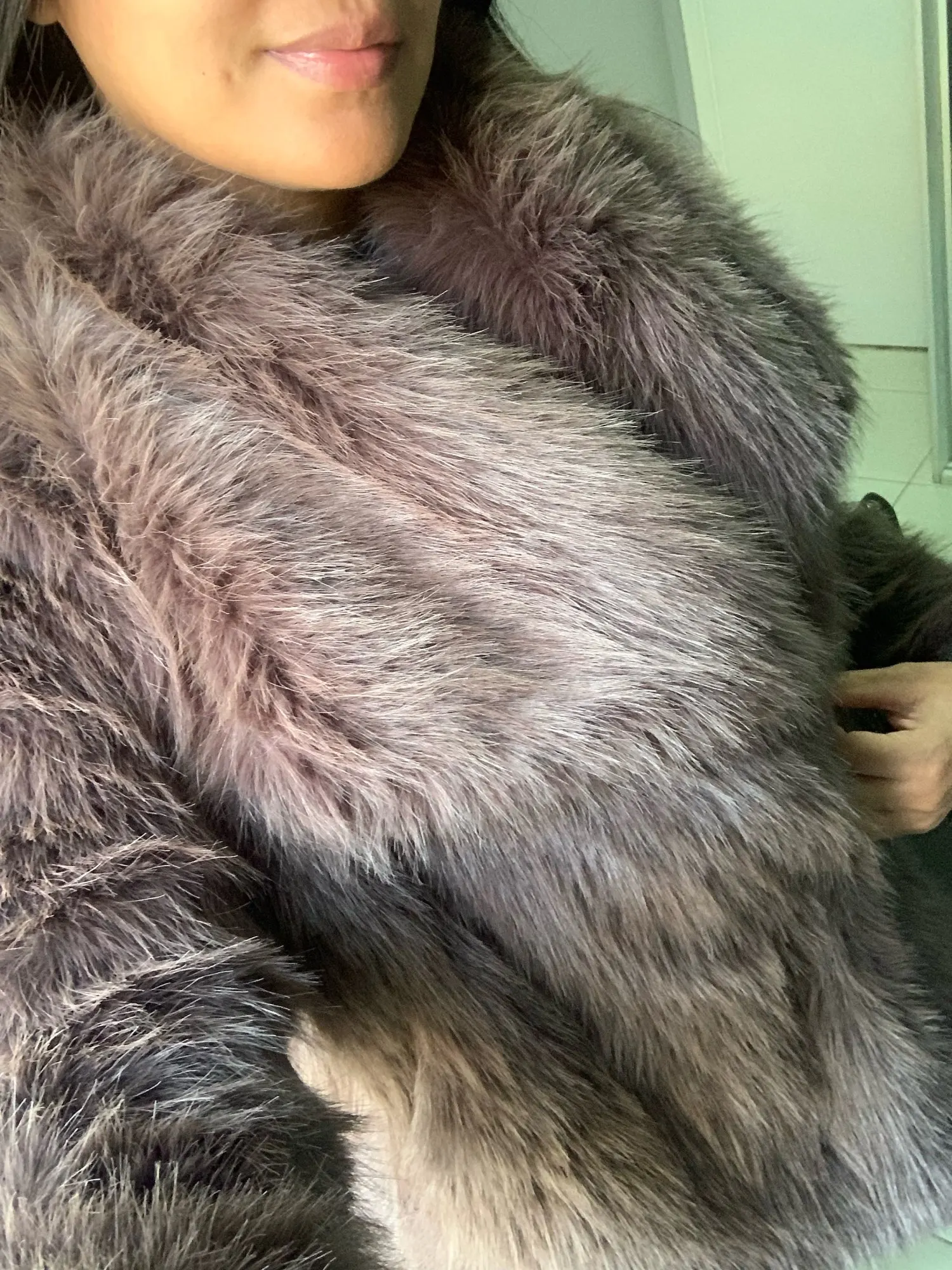 Elevate your winter wardrobe with the Velvet Frost Faux Fur Jacket, the ultimate blend of glamour and comfort. This cropped coat features ultra-soft faux fur in a dreamy lilac-grey hue, perfect for turning heads on chilly days. Designed with a chic lapel collar and discreet front snap buttons, it offers a flattering silhouette and easy layering. Whether you're heading to brunch or a night out, this cozy yet bold piece is your new cold-weather essential.